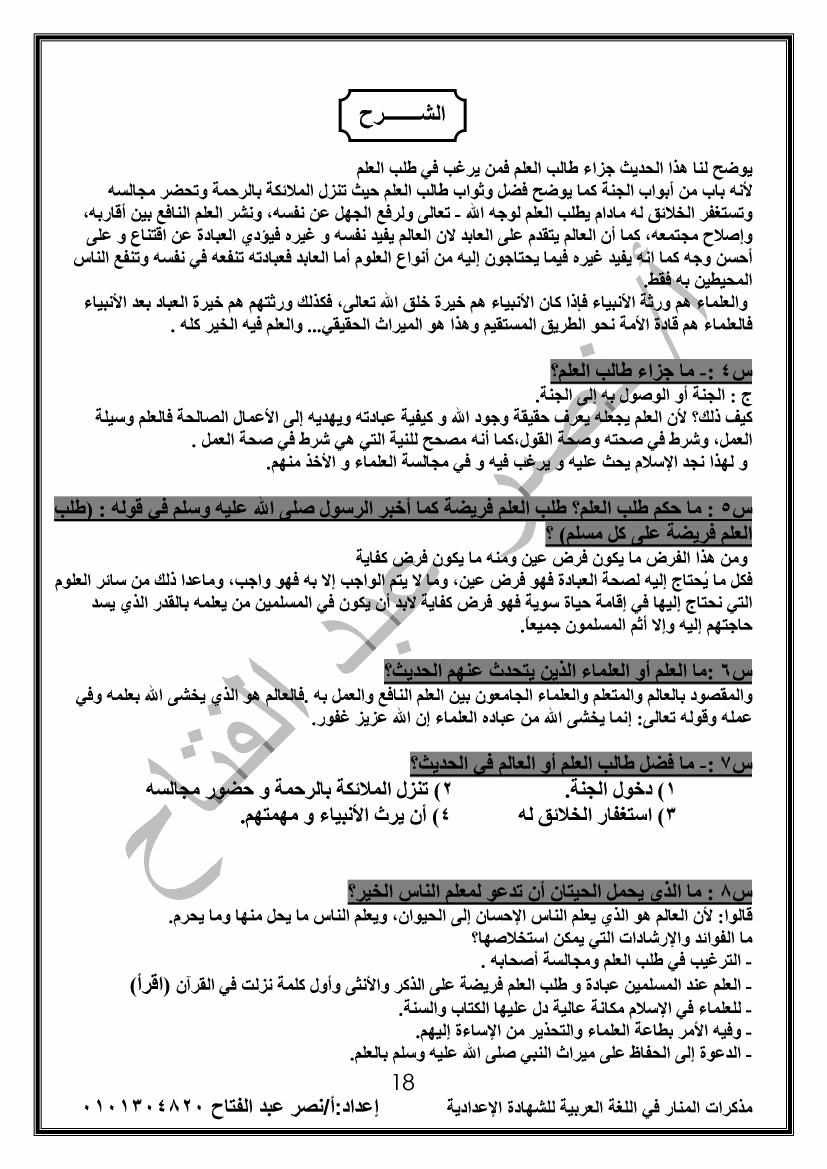 اسيوط فيس توك هام لطلاب الصف الثالث الاعدادى بالصور أقوى مذكرة سؤال وجواب لمادة اللغة العربية