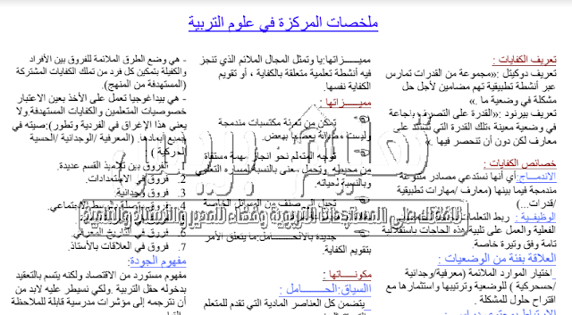 ملخصات مركزة في علوم التربية والتكوين للتحميل Pdf